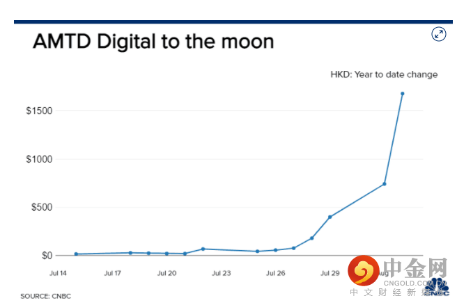 中概股尚乘数科于7月15日登陆纽约证券交易所,仅16天,股价就从发行价的7.8美元,飙升至8月2日收盘的1679美元。总市值也从上市当日收盘的30亿美元飙至如今的3106.91亿美元(约2.10万亿元人民币),市值暴涨超100倍!