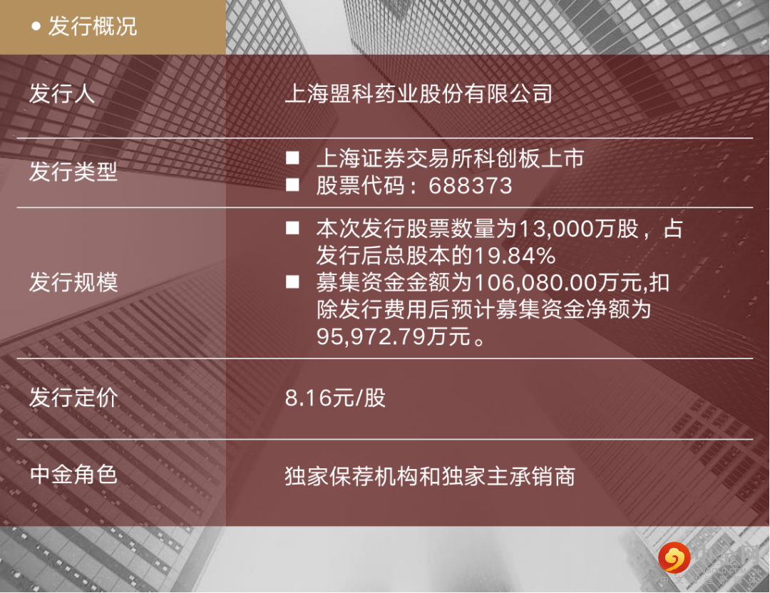 金公司担任本次盟科药业科创板IPO项目的独家保荐机构、独家主承销商。