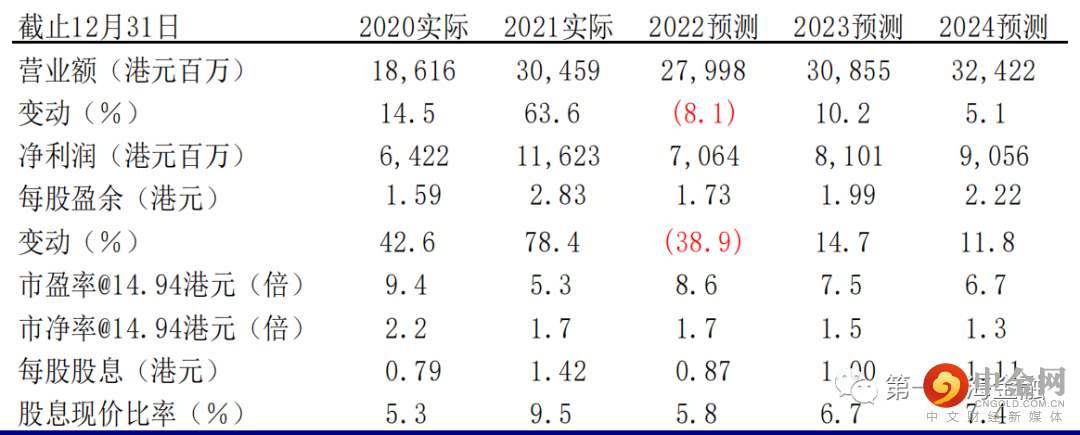 38.4%,较同期下降 14.6%。权益持有人应占纯利为 33.05 亿港元,同比下降 38.5%,