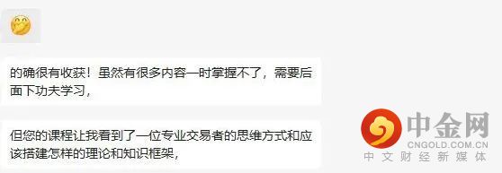 本次课程全程干货满满,主讲分析师以风趣幽默、生动活泼的呈现方式,让理论知识不再枯燥乏味,从而更有效地帮助来自不同年龄层、不同行业的投资人理解和吸收课程内容,匹配自己的交易策略,高效掌握交易知识,摆脱无效碎片化学习方式,精准判断市场趋势。
