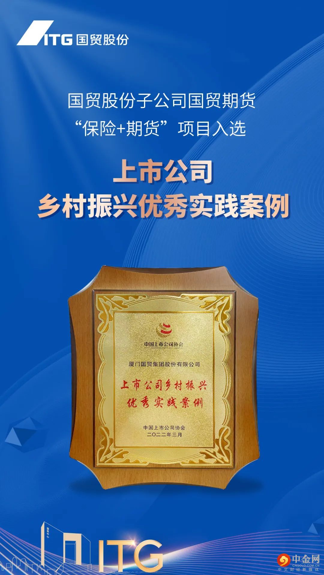 为进一步彰显上市公司为脱贫攻坚及乡村振兴做出的突出贡献,树立优秀典范引导更多的企业积极参与乡村振兴战略,2021年,中国上市公司协会开展乡村振兴实践案例征集活动,将优秀案例汇编成册(《上市公司乡村振兴优秀实践案例》)并在全国范围内推广。厦门国贸集团股份有限公司(以下简称“国贸股份”)提报的子公司国贸期货有限公司(以下简称“国贸期货”)优秀案例《以行动书写国企担当》入选。