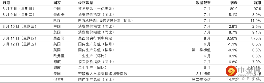 预期美国7月份消费物价指数通胀跌0.3个百分点至8.7%(同比),这提高了整体美国通胀在6月份见顶的预期。汽油价格下跌,可能把持续通胀率由上月的1.3%降至0.2%(环比),但核心服务和重要的房屋分项指数可能继续带来上行压力。预期核心消费物价指数通胀将升0.2个百分点至6.1%(同比)。