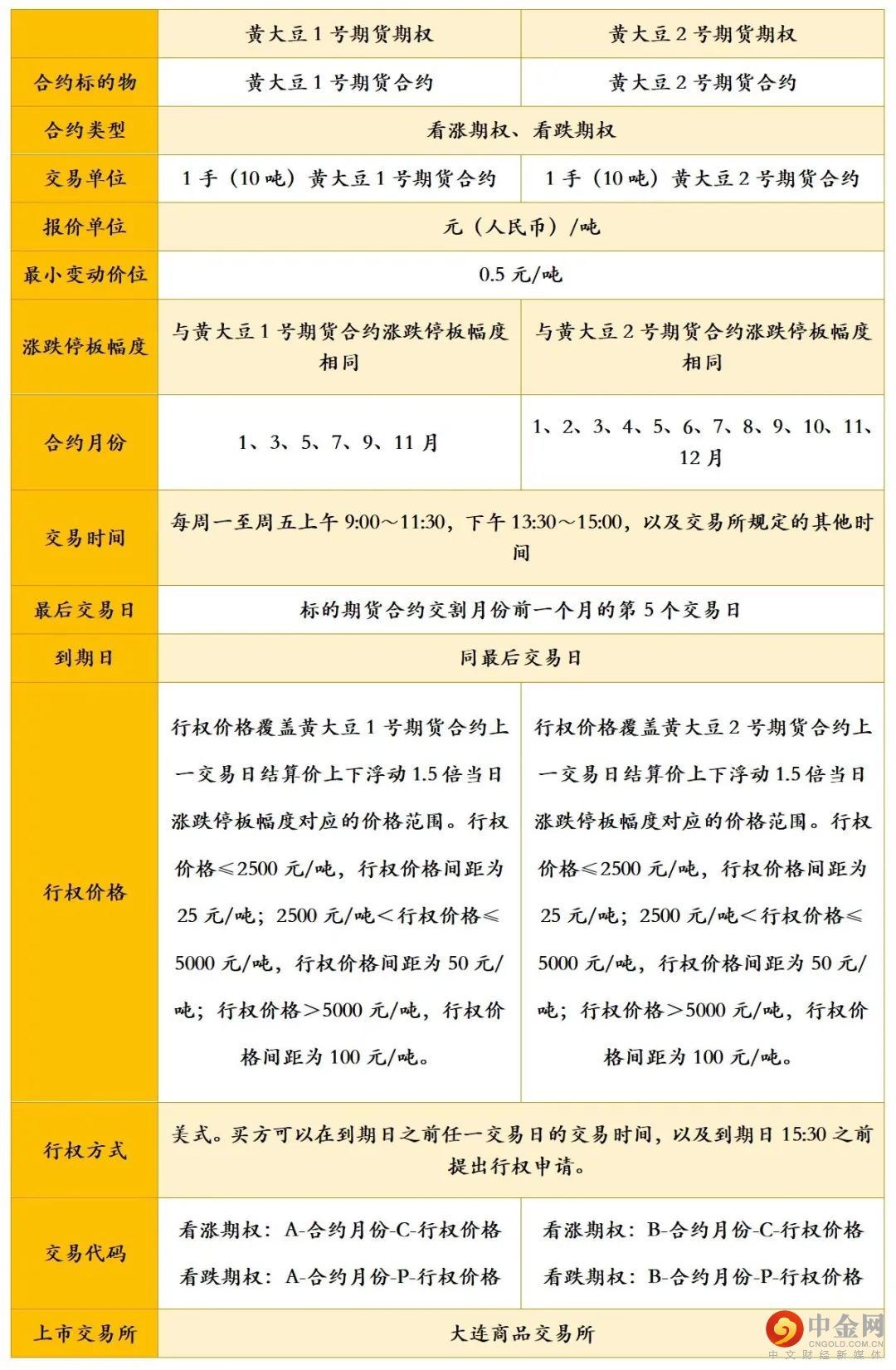 (1)黄大豆1号、黄大豆2号期权合约规则