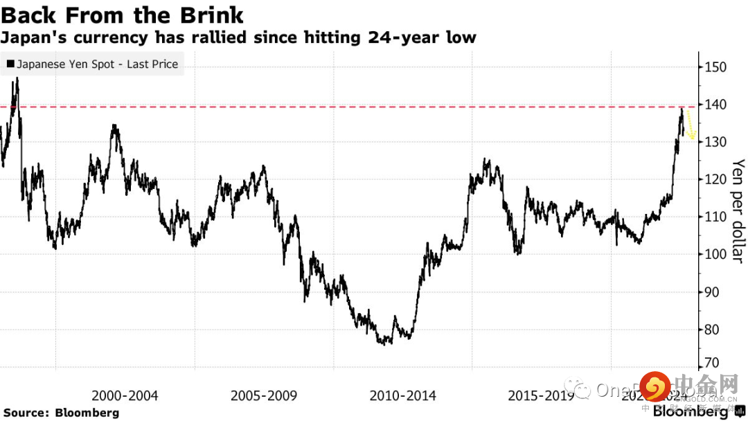 基准美债收益率已从今年6月的峰值下跌超过60个基点,上周收于2.83%。而美元兑日元已从顶峰跌落超过3%,至135左右。