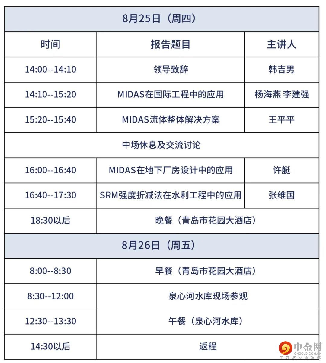 由北京迈达斯技术有限公司主办的“迈达斯水利设计院总工交流会”将于2022年8月25日-26日在青岛花园大酒店召开。本次会议将邀请华北地区大中型水利设计院领导及专家,以“学术讲座+现场参观”的形式进行深度交流,欢迎各位专家各抒己见、热烈探讨,共同促进华北地区水利行业的发展。