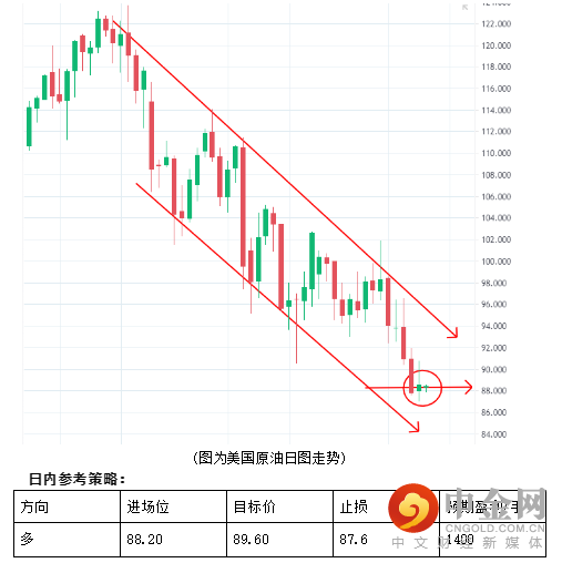 上周五,美油在欧盘时段持续走低,来到87.02,美盘一度反弹逾3美元,最高90.75,随后回吐涨幅收在88.53,小幅收涨0.84%。
