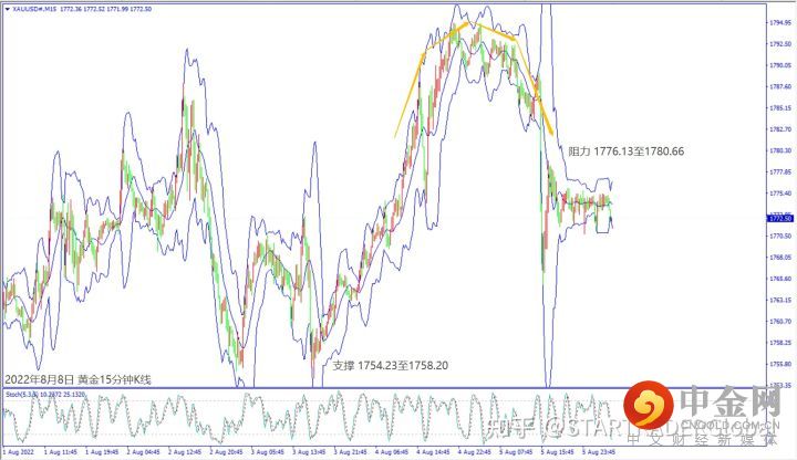 上周五(5日)美国经济数据利好美元大涨,也让黄金价格反转下跌约30美元,尾盘守在1770关口上方整理。预期今天(8日)美联储官员对经济和加息有望利好美元,黄金价格一旦掼破5日均线1772美元,建议可短空操作。