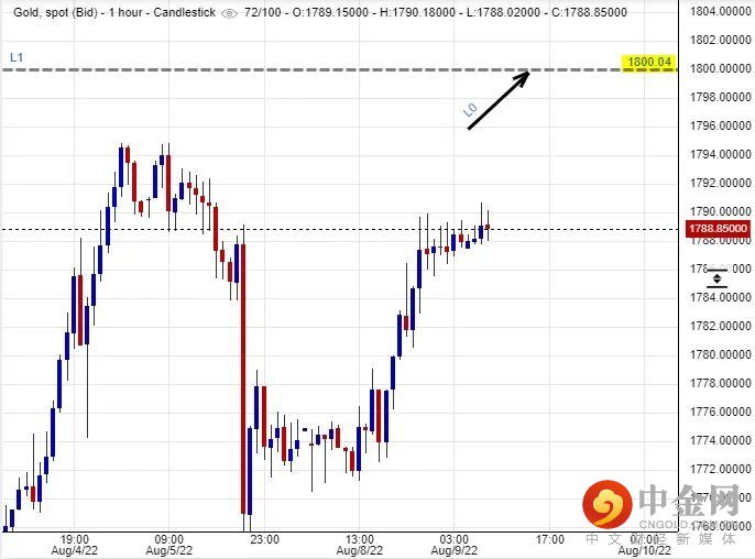 金价能否在短期间于$1,800美元水平站稳阵脚来,很需要对通胀敏感的资金会否开始押注金价已经在$1,720美元的上方站稳脚步。此外,亦会密切注视明天美国发布的七月份消费物价指数结果。假若数据结果是比较六月份的时候为高的话,这通胀因素便有力把金价推高至$1,800美元水平。然而,加息担忧雾霾始终是压抑着金价的一个关键因素。故此,短期间金价就算能够有力回升至$1,800美元附近之后亦应该随即有显注的回吐压力。