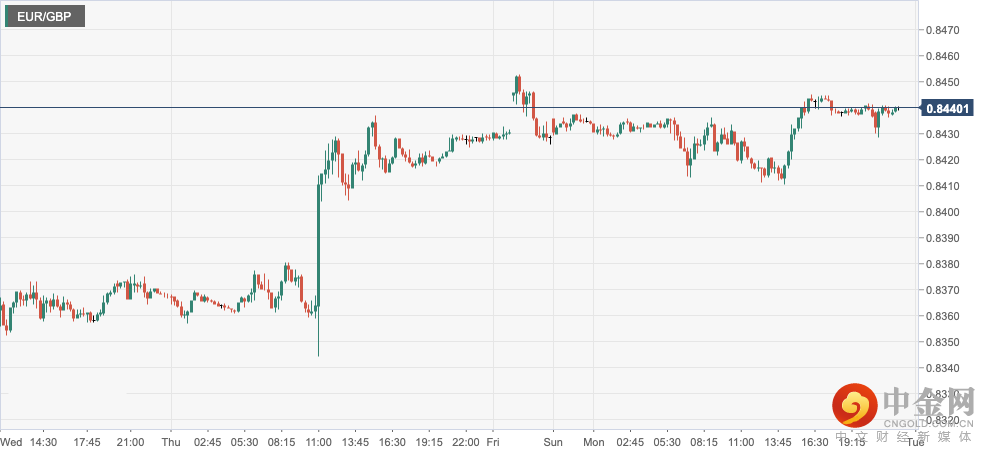 欧元兑英镑周一收盘微幅上涨后,今日开盘升至0.8440附近,因近期美元及美债收益率回落,使得欧元获得上行空间,英镑则下行疲软。