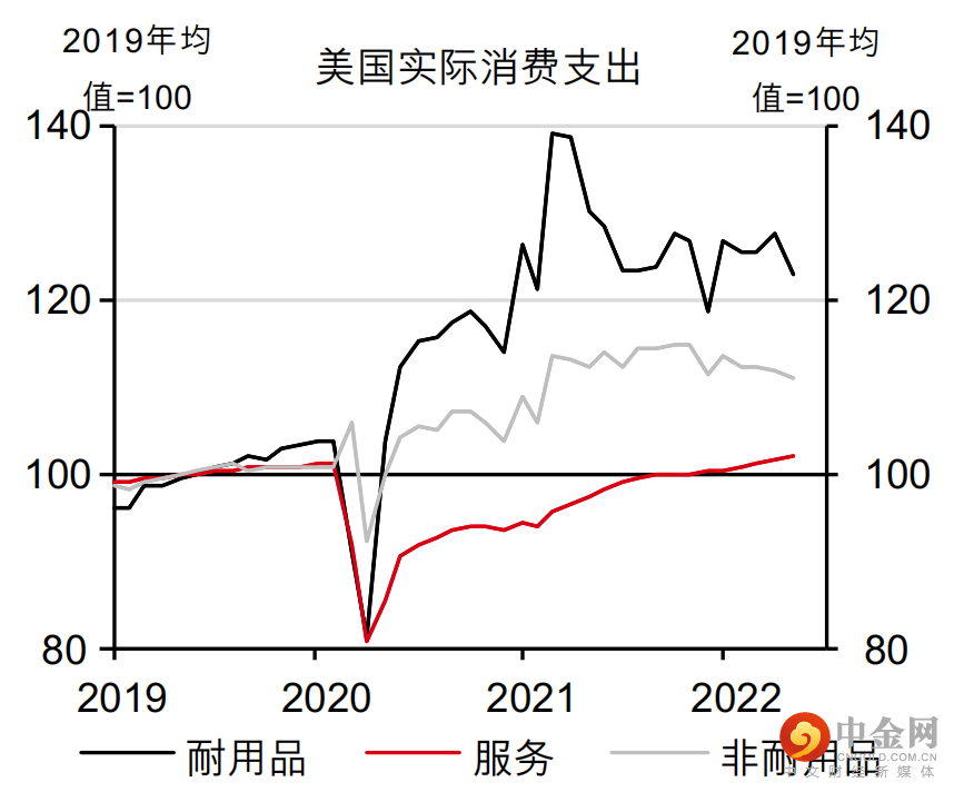 年初至今,全球经济在战争、商品价格飙升和利率上升的背景下展现出较强的韧性。例如,英国5月消费支出比2020年2月增加2.6%(按消费量计算),而在美国,5月实际个人消费支出(PCE)比疫情前增加4.4%(见图1-2)。尽管增速明显放缓,但目前为止,支出还没有出现迅速恶化的迹象。