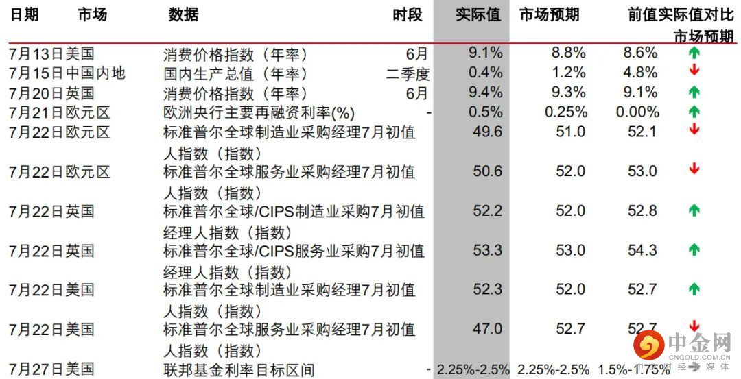 ↑高于预期——实际增速高于市场预期,↓低于预期——实际增速低于市场预期,→实际增速符合市场预期