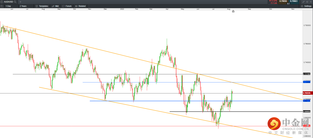 本月需关注澳联储对9月会议加息的引导,若不能继续维持50bps的加息节奏,或对澳元多头形成制约。