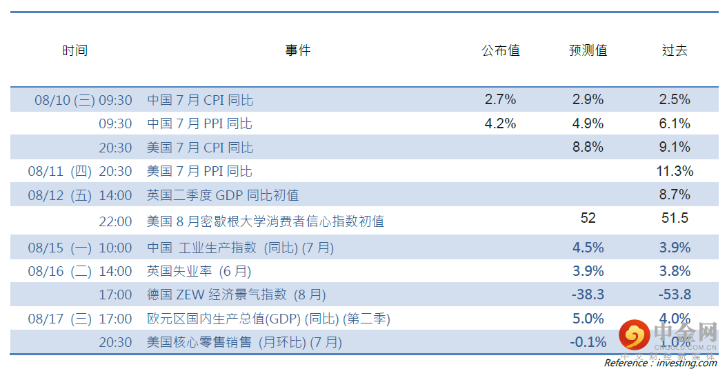 美国通胀或见顶:7月CPI同比增8.5%,较6月的四十年高位9.1%超预期回落。