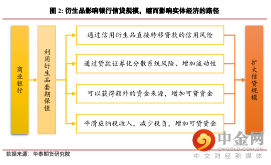 实体企业面临着利率风险和信用风险的影响。借助于期货市场的风险管理功能,银行运用衍生品交易不仅可以抵消期限错配产生的利率风险,而且有助于降低监测费用;帮助企业管理经营流程中抵押物的价格波动风险,为银行信贷风险管理提供便利条件,降低银行对资本需求方的门槛要求。
