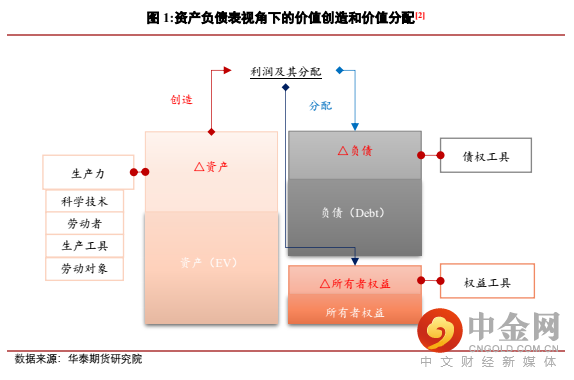 金融并不只是被动反映实体经济,而是会在反映和引导实体经济过程中加剧经济资源的坍塌(解构)和聚集(重构),进而实现资源按照金融体系的认知和标准优化配置。从服务的对象来看,本文我们延续“期货市场和碳中和(二)”[1]中资产负债表视角的经济表达结构,通过资产、负债和所有者权益三个角度出发,探讨期货对于实体经济的服务内涵。