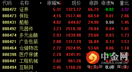 涨跌方面,证券、保险、船舶、元器件、多元金融等内容涨幅居前。