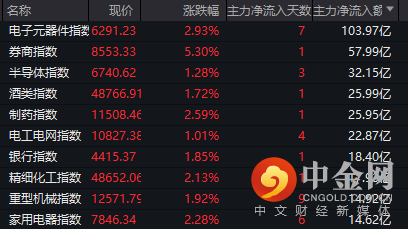 据wind主题行业看,电子元器件指数、券商指数、半导体指数、酒类指数、制药指数等主力净流入额排名居前。