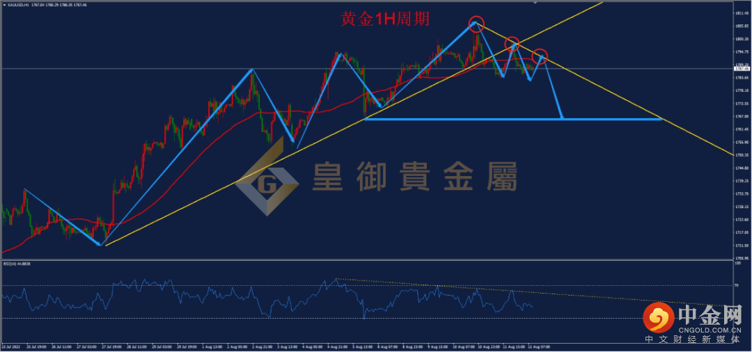 黄金昨日亚欧盘震荡反弹,美盘一度冲击1799一线后受阻,目前黄金经历了几次冲高试探,但均以失败告终,多头动能衰竭,在4小时MACD的持续作用下,黄金不断筑顶,同时昨日1小时级别RSI下降趋势线为行情带来较大压力,今日如指标反弹至趋势线仍有望受阻,并带动黄金下跌,重点关注上方趋势线1795一线压力,如有冲高可轻仓尝试空单。