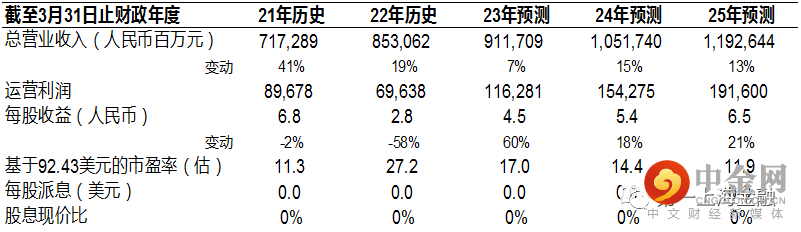 股价: 92.93美元/89.90港元