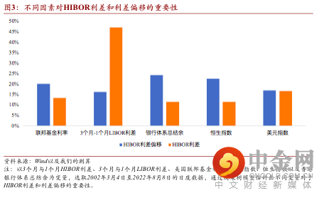 本地港元流动性或将进一步收紧,HIBOR利率曲线平缓。一方面,决策树模型结果显示,影响利差偏移的因素总结为(按重要性从大到小):本地港元流动性、美国利率水平以及利差中枢水平。具体来说,当本地港元流动性较为充裕,又处于强美元周期以及利差中枢较高时,HIBOR利差阔于LIBOR利差的可能性较大。结合这几方面因素,尽管近期由于港元走弱导致银行体系总结余减少至约1200亿港元,但仍高于2018-2019年的平均水平,美元指数处在105以上的高位,叠加今年以来LIBOR利差已经走阔至52个基点,都符合HIBOR利差大于LIBOR利差的判断情形。另一方面,多元线性统计模型发现,香港本地流动性对短端利率影响更多。其中,香港银行体系总结余减少1个百分点,对应1个月HIBOR边际上升0.24个基点,而3个月HIBOR边际上升0.22个基点。目前,短期港元流动性仍在,截至2022年8月8日1个月HIBOR低于1个月LIBOR约88个基点,而3个月HIBOR低于3个月LIBOR约62个基点的局面,HIBOR利率曲线比LIBOR利率曲线更为陡峭,故而HIBOR利差更大。从香港本地流动性变化的角度来看,未来若港元持续走弱并触发弱方汇兑保证,金管局会继续购入港元,使得本地银行体系总结余持续降低,预期短期内港元流动性会进一步收缩,1个月HIBOR也将会随之上升,且预计上升幅度高于3个月HIBOR。此外,未来若在本地港元流动性紧张、美元周期走弱以及利差中枢较低等多重因素的复合影响下,HIBOR利差接近LIBOR利差的可能性也较大。总的来看,HIBOR利率曲线斜率预期变小,3个月HIBOR与1个月HIBOR之间利差未来或将收窄。