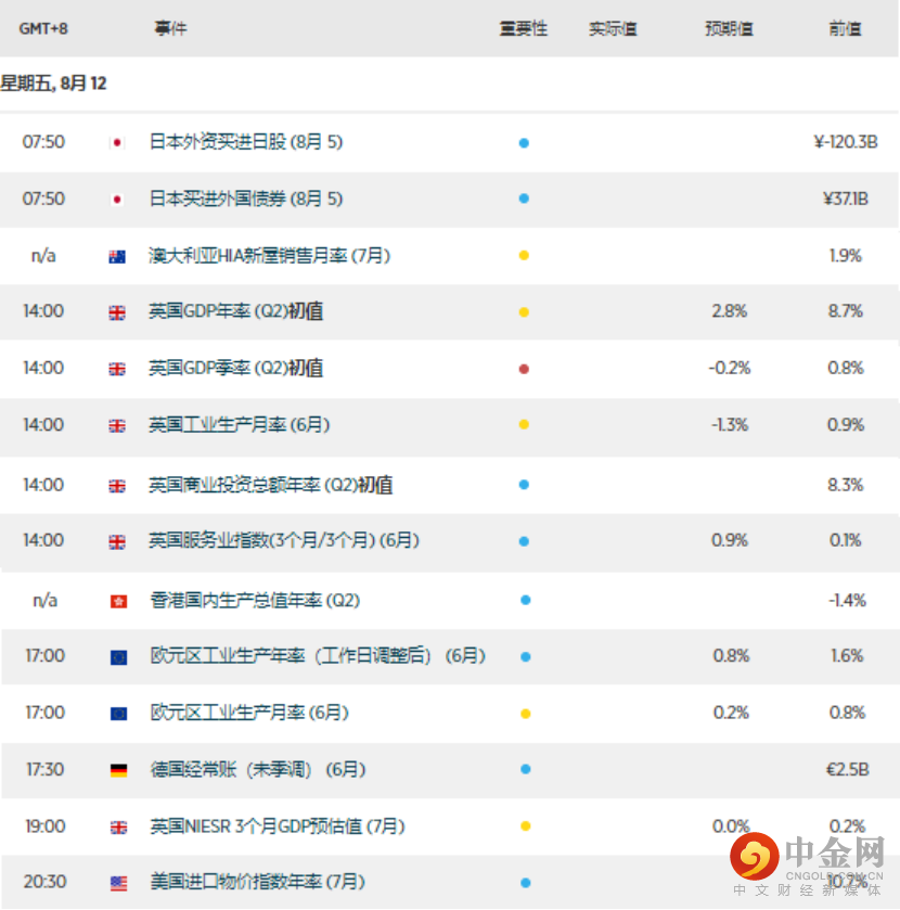 今日经济日历(标准时间+8小时)