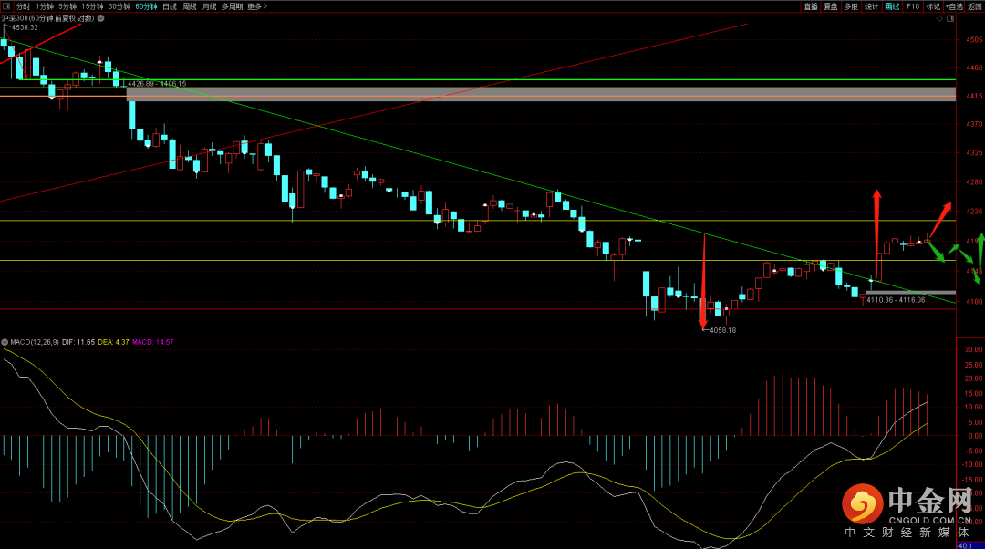 沪深300短期继续向上后续只有突破4270才有望摆脱下降趋势,注意观察后续向下回踩的走势,如果出现短期出现大阴调整注意把控好节奏点,大概率会出现再次的向上反弹走势。