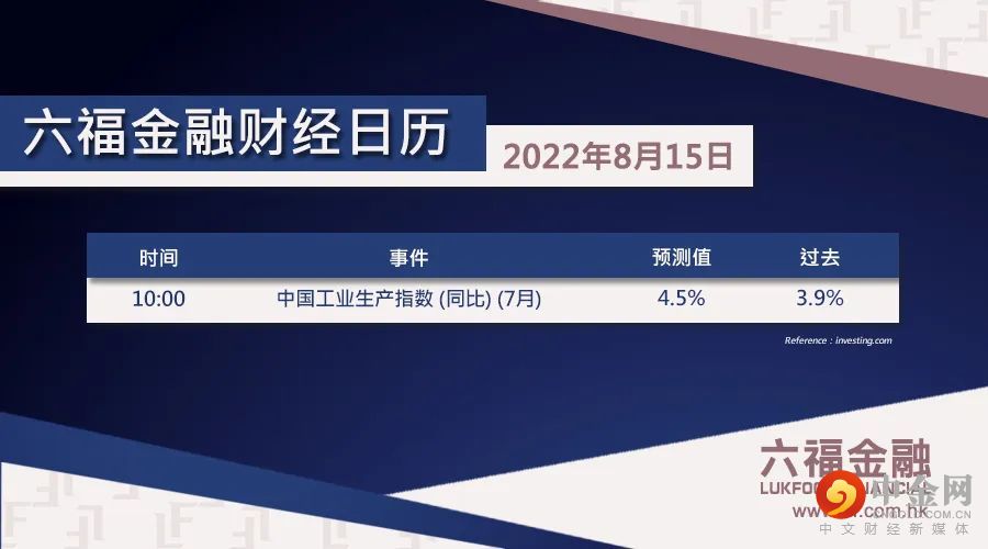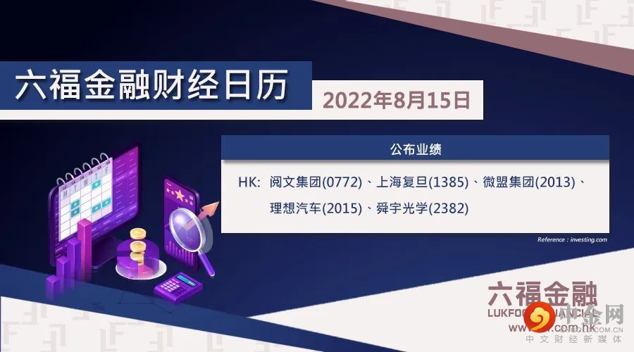 【六福金融财经日历8月15日】投资者请留意!今日将公布以下经济数据及业绩: