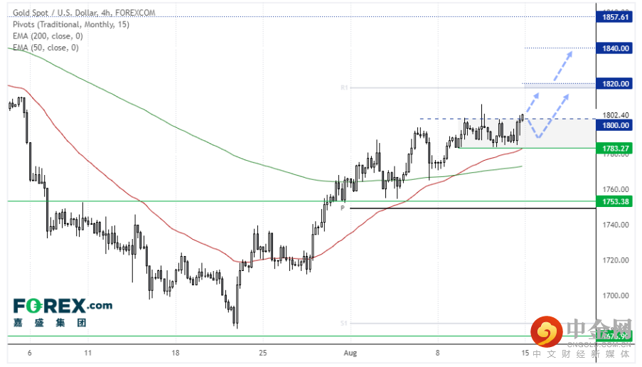黄金因此得到助力连续第四周反弹,而且周线实现6周中首次收上1800。