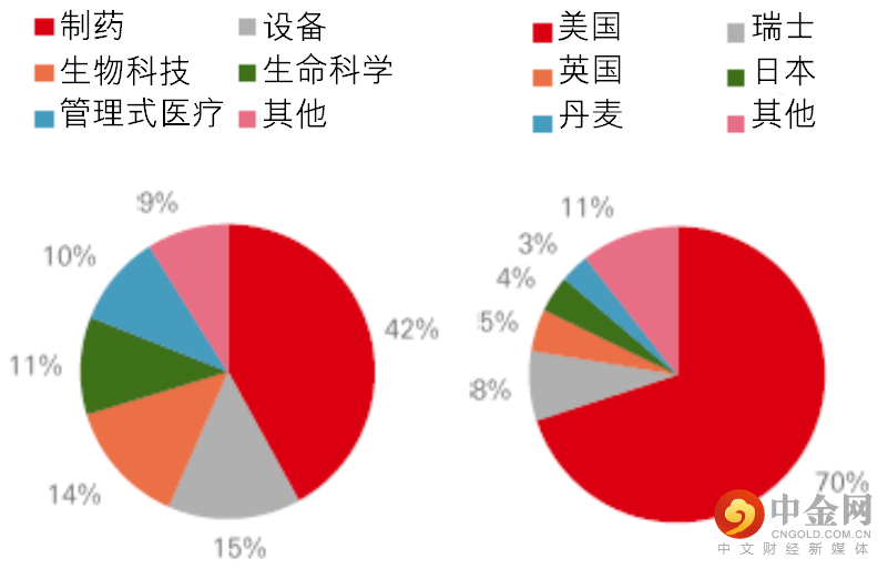 MSCI全球医疗保健板块指数的分类板块和地区分布