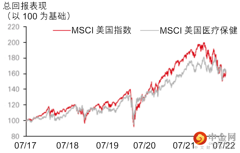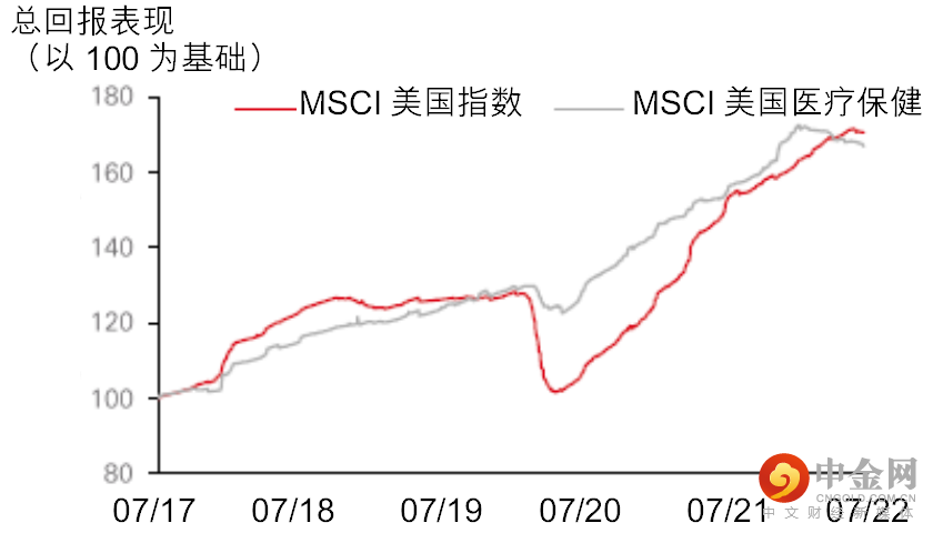 美国医疗保健板块的表现与整体市场相若,但波动远低于后者