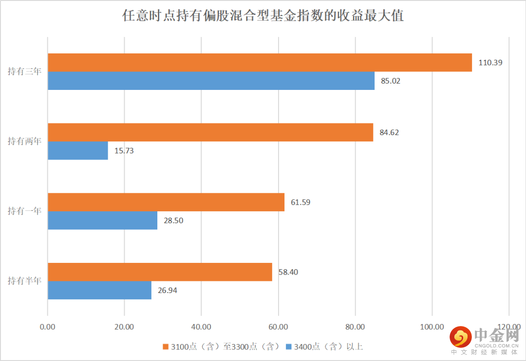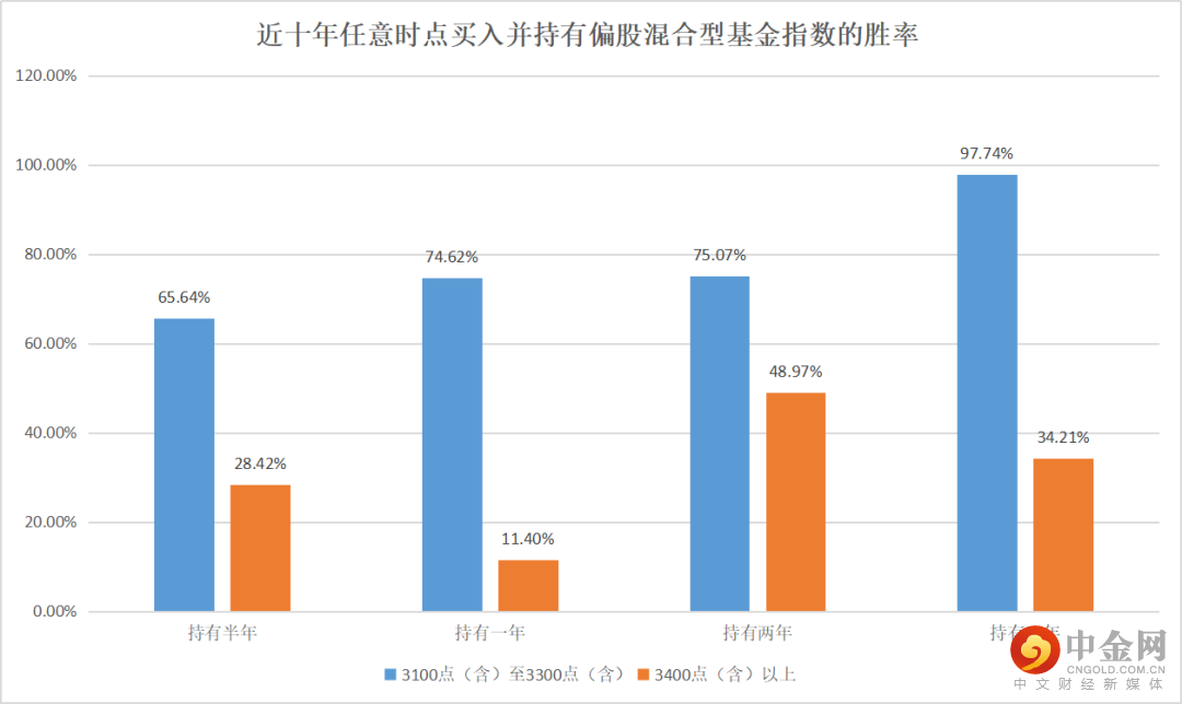 统计数据显示,3100点至3300点买入并持有偏股混合型基金指数,整体胜率明显优于3400点以上买入并持有该指数。