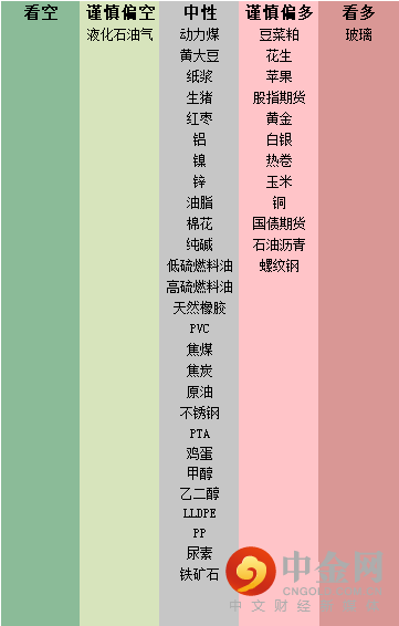 注:上图所有品种观点为主力合约的短期观点,具体以官网报告为准