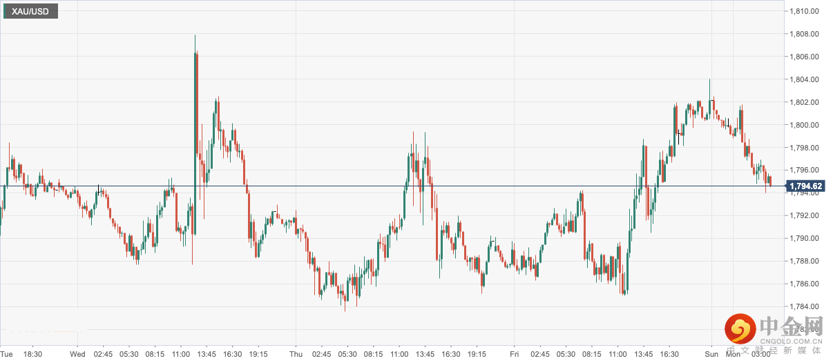 黄金兑美元上周五收盘大幅上涨一度冲破千八关口后,今日开盘盘整在1794.62附近,因美国一年期通胀预期降至6个月低位及美国进口物价七个月来首降,市场对美联储9月加息75个基点的预期下降,伴随美债收益率下跌,使得金价获得上行支撑。
