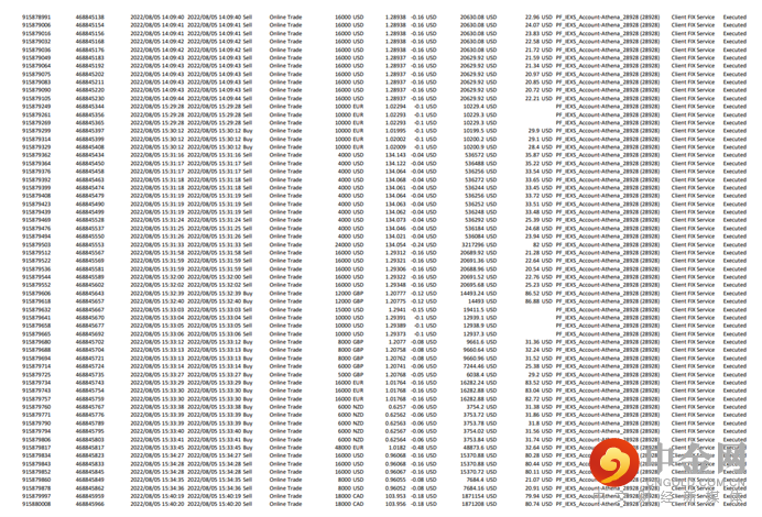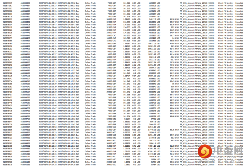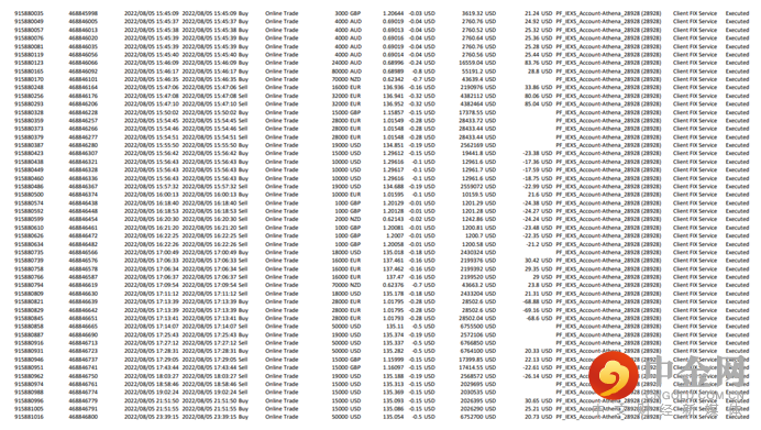 选手“LV--YOU”在本届交易大赛中以89.62%的盈利率获得重量组殿军,他在接受电访时表示,在比赛中保持一颗平常心极为不易,不让心态影响交易策略和谨慎地做自己熟悉的品种,严格风险控制,设好止盈止损是自己领先其他参赛者的重要原因。据选手回忆,在大赛前期,由于区域冲突、天然气断供等基本面的变数连续冲击金融市场,主要进行货币对交易的“LV--YOU”,遇到账户亏损的问题,他并没有一味的持仓等待,而是调整心态及时止损,而后迅速转变方向,控制账户回撤。与冠军选手“LI--ING”一样,在比赛最后一天抓住非农数据的机会,实现大额盈利,完成逆转。以下为选手“LV--YOU”在比赛前期控制回撤盈利率详情以及非农期间的盈利订单详情,注:截图展示为后台提供LP交易截单,已获得选手公开订单的同意