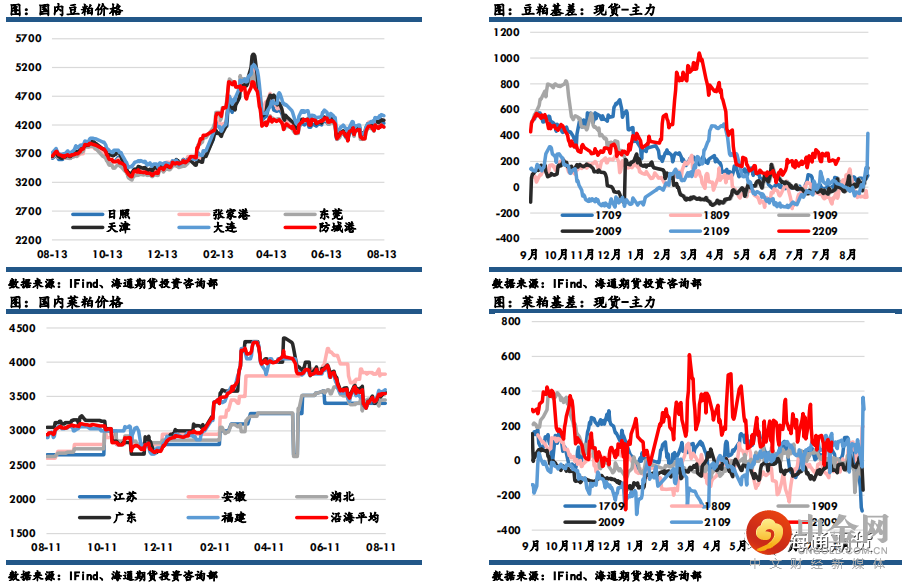 豆粕主力收盘3686元,下跌63元,跌幅1.68%,菜粕主力报收2830元,下跌52元,跌幅1.80%。沿海区域油厂主流报价在4200-4270元/吨,广东4200元/吨跌40元 /吨,江苏4210元/吨跌30元/吨,山东4250元/吨跌30元/吨,天津4270元/吨跌30元 /吨。USDA8月供需报告上调美豆产量的预估至45.31亿蒲,高于市场预估均值的45.26亿蒲,令结转库存落在了2.45亿蒲,高于市场预估和7月预估的2.3亿蒲。高于预期的单产弥补了种植面积减少的影响,整体报告偏利空。美豆进入8月的关键生长期之后,剩下较短的时间去炒作天气,关注干燥高温天气对产量的后续影响。国内原材料供应受累于二季度较差的进口利润,预计后期 8-9月进口大豆量减少,8-9月为饲料需求量旺季,豆粕有望不断去库存,豆粕基差或将维持坚挺格局。