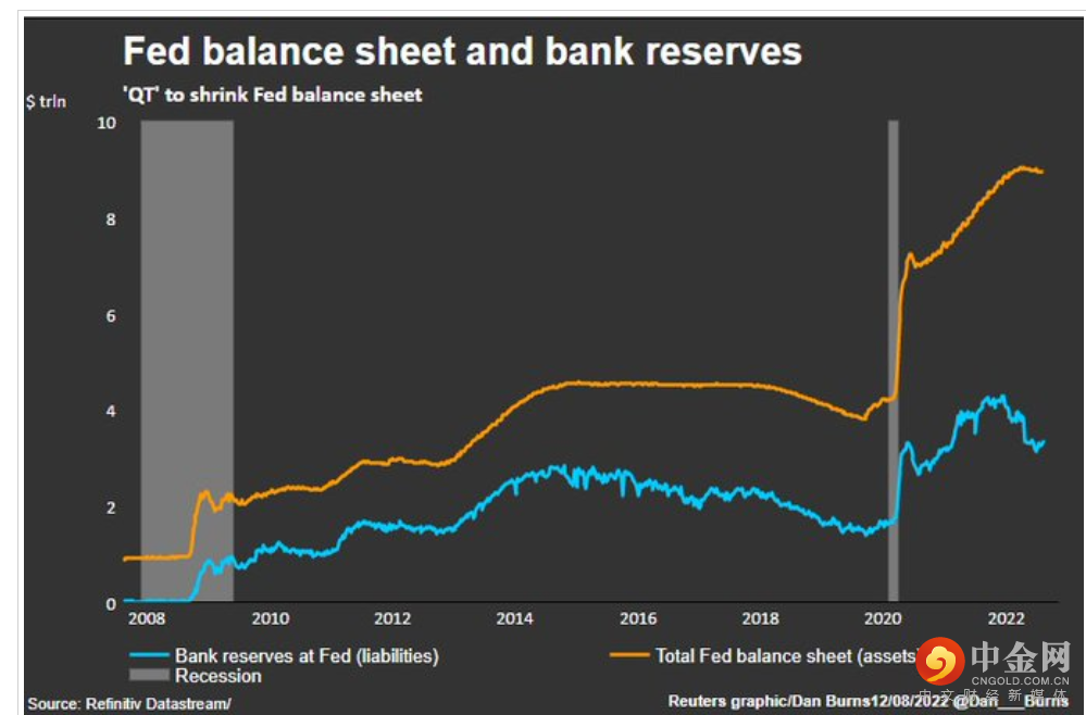 截至上周,美联储的资产负债表规模接近9万亿美元。自6月份美联储启动QT以来,其持有的美国国债和抵押贷款支持证券并未显著下降,但随着时间的推移应该会下降,尽管不会直线下降。