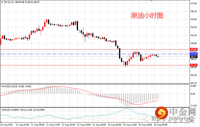 原油周一下跌,最高91.98,最低86.81,日图收出下影中阴,显示短期空头发力,多头虽有抵抗,但空头优势明显,日图级别或延续震荡回调。小时图看,昨日亚欧盘下跌,美盘时段反弹后回落震荡,下跌中继概率大。今日亚盘窄幅波动,操作上可逢高在89附近轻仓空,止损89.80,目标87.10。