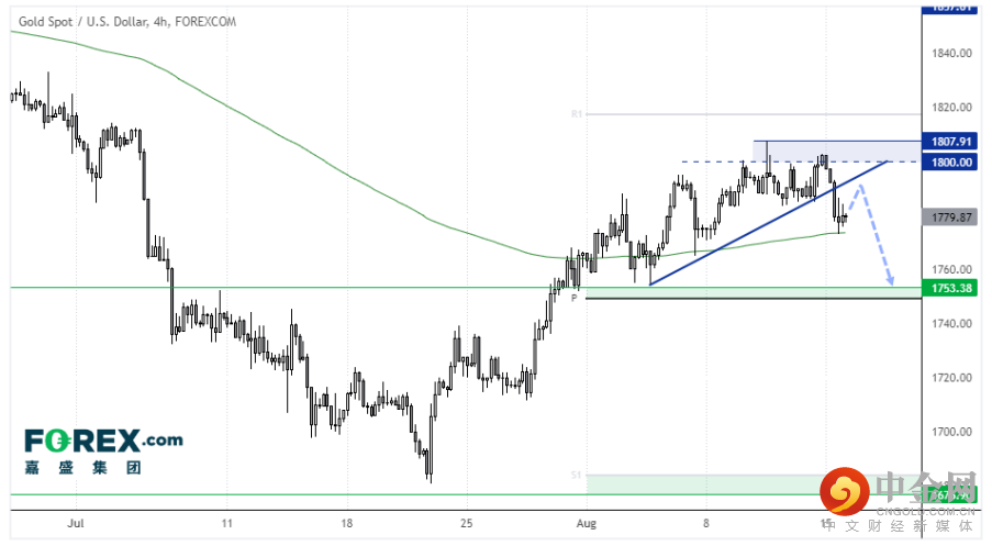 金价下破1783支撑位,迅速打破了我们昨天的看涨观点。日图形成了看跌吞噬K线,暗示金价即将进入修正阶段。4小时图显示,价格也打破了趋势线并跌至200期指数移动均线。如果价格自当前价位反弹,我们选择在形成下降高点证据的前提下,于破败趋势线下方看跌,目标1753支撑区域。