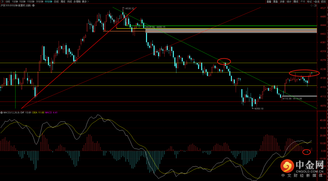 沪深300短期短期出现再次上扬,关注量能的变化后续如果量能无法跟上上行空间有限,且大概率会快速再次回探前期缺口附近。上方强压在4250到4270附近。
