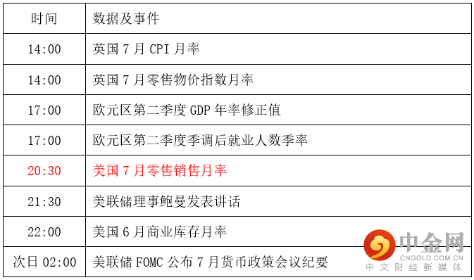 最新公布数据显示,美国7月工业产出月率录得0.6%,数据高于前值的-0.2%,超出市场预期。工业产出月率3个月以来首次实现增长。尽管上月制造业走强,但企业依旧面临着库存积压以及国内市场需求放缓的问题,这从长期来看并不是一件好事。晚间将公布美国7月零售销售月率,该项数据上月录得1%,本月预期为0.1%。该项数据能较好的体现美国市场景气程度。如果数据符合预期,甚至低于预期,黄金或将迎来反弹。若数据高于预期,则黄金还将迎来新一轮下跌。
