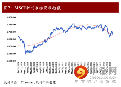 9月末联储至少将再加息150个基点。为了美国在经济衰退来临前拥有足够的货币政策空间以应对衰退风险,进入下半年美联储或将在9月前至少再加息150个基点以保证基准利率不低于经济潜在增长率(即2.5%)(图5)。同时,美联储6月1日如期启动缩表,预计今年年内缩表规模将等于一次性加息25个基点。考虑到,美国劳动力市场供需失衡、雇佣工作模式的重构,以及全球能源和粮食价格的高波动性,若中长期内高通胀水平无法顺利回落至预期目标区间,市场应高度警惕联储进一步加息和主动缩表对金融市场造成的流动性影响。从历史经验看,主动缩表对资产价格的冲击存在非线性。一是短期主动抛售国债可能会对市场整体流动性产生冲击,同时放大美国和国际金融市场的敏感度。二是主动出售国债不利于联储稳定市场预期。在市场高度不确定性的情况下,主动缩表将影响联储前瞻指引的效果。然而,相比主动卖出国债,美国主动卖出MBS对市场产生的不确定性影响较小。因此,如果年内美国通胀压力持续,预计联储将主动卖出MBS同时配合至少150-200个基点的年内加息以应对通胀威胁。欧洲央行年内或将加息100个基点。欧元区高通胀很大程度反映了能源和食品价格的异常飙升,即便剔除能源和粮食价格因素,欧元区通胀仍处于欧元发行以来的最高水平。在4月欧洲央行议息会议上,欧央行官员普遍认同扭转欧元区超宽松政策并逐步将货币政策立场调整至中性水平。尽管货币政策立场调整有助于短期改善欧元区的滞胀局面,但考虑到货币政策对能源和粮食价格抑制有限且中长期欧元区经济增长动力转弱,欧央行的加息力度将远不及美国强势。我们预计,欧洲央行加息将发生在今年7月,并很可能将在第三季度末(9月)结束负利率政策,年内欧央行加息次数预计为3-4次。欧美货币政策收紧对全球市场货币的影响。随着欧美货币政策收紧,预计美元指数年底或突破105。尽管市场对美国经济转向衰退的预期普遍上升,但强劲的非农数据和通胀新高将使美联储继续维持强势鹰派姿态。因此,预计三季度美元指数将向105的位置进一步试探。相反,欧元年底将向下回落至1.05上下水平。尽管5月欧元因欧央行超级宽松货币政策的立场转向迎来阶段性升值,但中长期来看,欧元仍将趋势性走弱。欧元区日益严峻的滞胀风险正在加剧财政收支的不平衡性,尽管这不足以导致实质性的债务危机,但债务风险预期的强化将弱化欧元持续走强。此外,受到乌俄冲突影响,欧元区贸易条件相比疫情前出现恶化(图6),这也不利于支持欧元未来走强。在全球三重异变的大背景下,今年年内澳元、纽币、加元的贬值风险仍较大,其次为欧元和英镑,美元年底预料仍将保持强势。受到日本央行收益率曲线控制和货币政策维持宽松的影响,日元短期内走弱,但长期仍看好日元趋势性走强。我们对新兴市场货币普遍看跌,尽管受益于大宗商品价格上涨的影响,今年1-4月部分新兴市场国家货币(如巴西雷亚尔、南非兰特等)表现强势,但随着美联储二季度加息及缩表政策落地,全球新兴市场货币迎来普跌。进入下半年,欧美央行更快地收紧货币政策,势必将加剧新兴经济体资本外流压力,预料未来6-9个月内新兴市场货币将趋势性走弱(图7)。