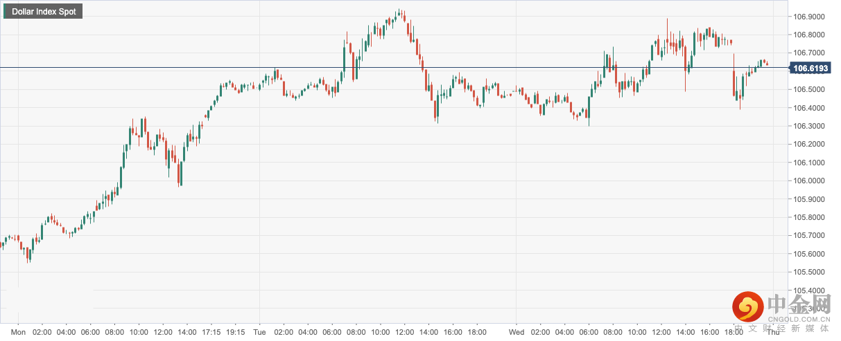 美元指数周三收盘小幅冲高后,今日开盘涨至106.61附近,针对美联储发布7月会议记录后缩减涨幅,因美联储官员担心在兑现控通胀承诺的过程中可能会过度加息。