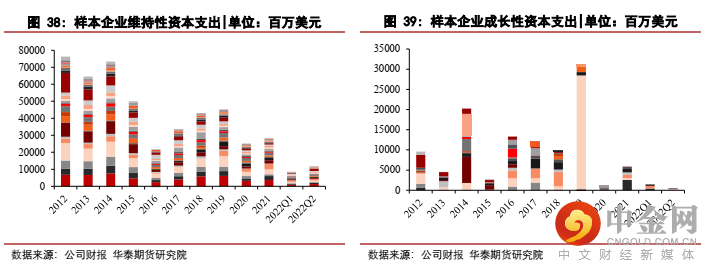 自2020年开始,在偿还债务和加强股东回报挤占了生产商大量现金的影响下,样本企业维持性资本开支金额大幅被削减,在总现金支出中的占比持续低于30%。而成长性资本开支的削减幅度更大,占比从2019年的22.94%减至2021年的5.3%。