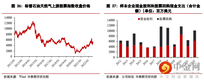 通过对样本企业的财务数据梳理后发现,2019-2020年,在国际原油和美国天然气价格下行以及新冠疫情爆发的双重压力下,美国页岩气生产商的盈利状况持续下降,股市表现日益不佳,企业通过大量借债以维持生产和经营。2021年-至今,在国际原油价格和美国天然气价格双双强势反弹后,企业的经营状况出现好转,但企业支出大量资金用以偿还债务,并加大股东回报、提升股市表现,企业用于资本开支的资金持续被大幅挤占,增产能力正在受到限制。(财务指标统计口径见附注表格)