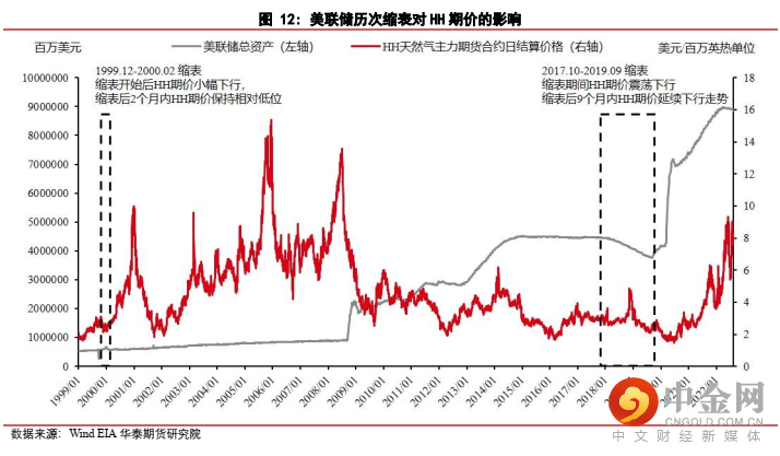自1990年HH期货合约上市以来,市场共经历了美联储的两次缩表周期,HH期价在缩表期间和缩表结束后的一段时期内均出现了不同程度的下跌。可以说,美联储的缩表对美国天然气价格造成了较为明显且持久的下行压力。