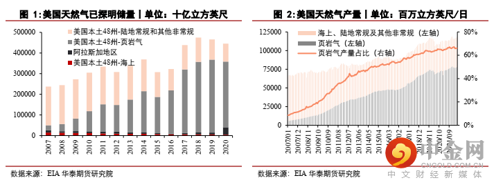 美国页岩革命成功后,页岩气逐渐成为美国常规陆地资源渐趋枯竭后重要的接续资源。美国能源信息署(EIA)的数据显示,截至2020年底,美国本土48州页岩气的储量为317.76万亿立方英尺,占美国天然气已探明储量的70.68%。