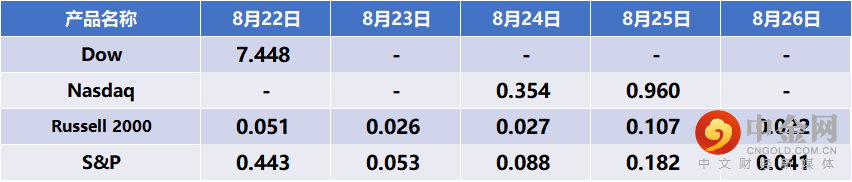 同时我们会计算出股息对股指预计产生的影响,并将数值每周发布在网站上。请您查看以下表格中本周股息调整数值的预测: