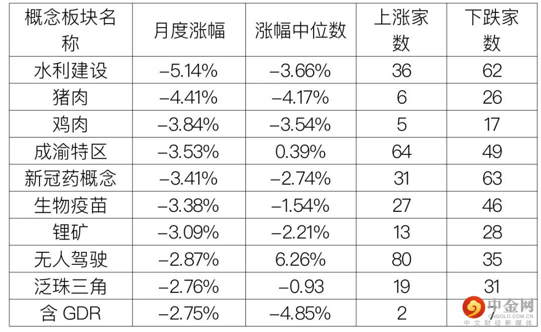 本期,下跌前十名板块的平均跌幅都不大,最高只有5%。从涨跌家数数据看,大致处于涨跌平衡状态,显示本期个股调整强度并不高,也与大盘先探底后反弹的总体特征相关。在行业板块特征方面,上半年活跃的通胀概念股普遍进入调整,与疫情相关的生物医药等板块也走势疲软。与新能源汽车相关的锂矿、无人驾驶也进入了跌幅榜,但幅度不大,处于强势板块合理调整的范围之内。其中无人驾驶的中位数实际上是大幅上升的,板块数据受到少数个股跌幅过大影响。总体上看,跌幅前十大概念板块,反映出的信息要点,还是与新能源科技相关度较低的板块,仍然处于疲软状态。
