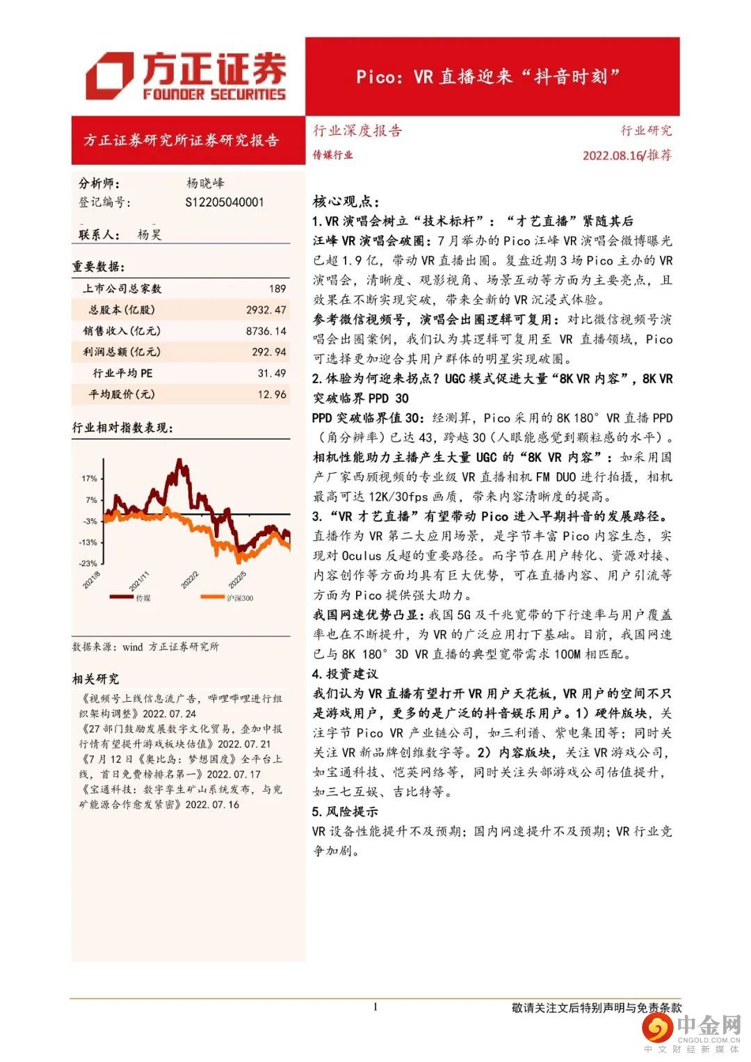 本文来自方正证券研究所于2022年8月16日发布的报告《Pico:VR直播迎来“抖音时刻”》。
