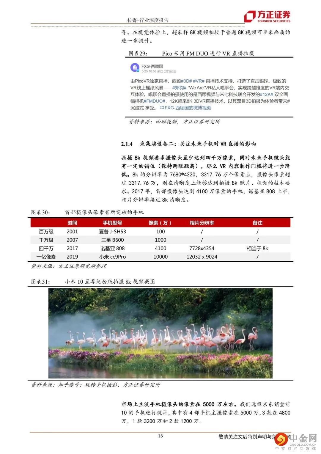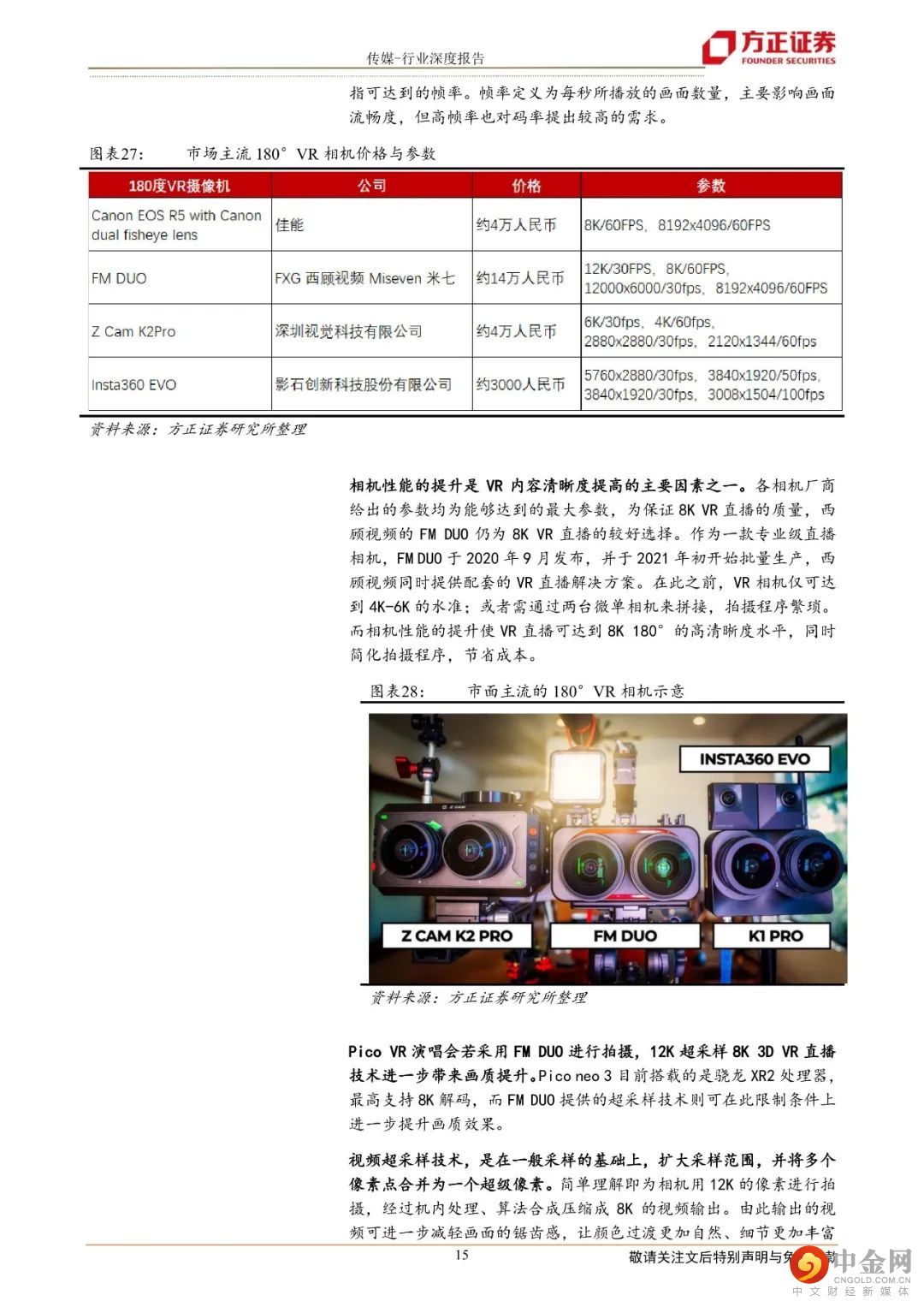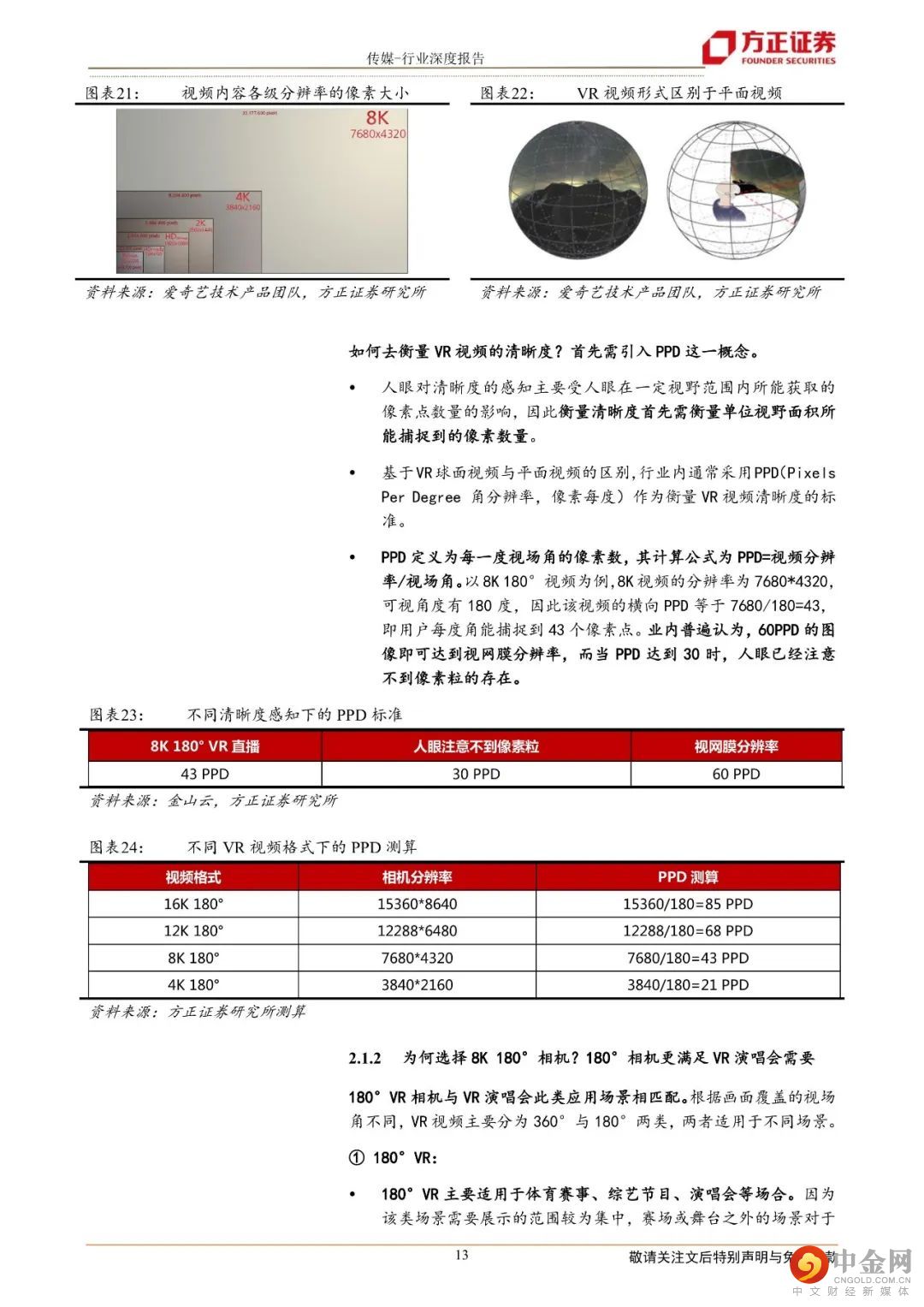 2.体验为何迎来拐点?UGC模式促进大量“8K VR内容”,8K VR突破临界PPD 30PPD突破临界值30:经测算,Pico采用的8K 180°VR直播PPD(角分辨率)已达43,跨越30(人眼能感觉到颗粒感的水平)。相机性能助力主播产生大量UGC的“8K VR内容”:如采用国产厂家西顾视频的专业级VR直播相机FM DUO进行拍摄,相机最高可达12K/30fps画质,带来内容清晰度的提高。